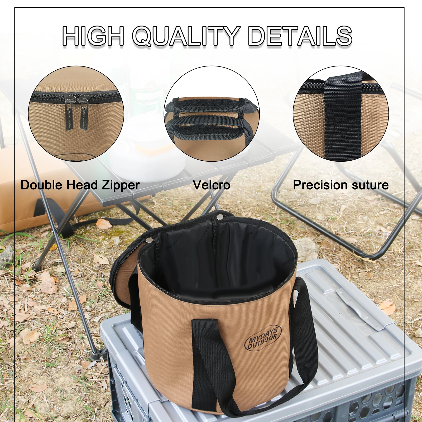 MATERIAL: The Camping Storage Bag is made of canvas and high quality EVA lining, and the bottom is PVC material, which is wear resistant, waterproof, and durable. Perfect for travel, camping, camping and more.
