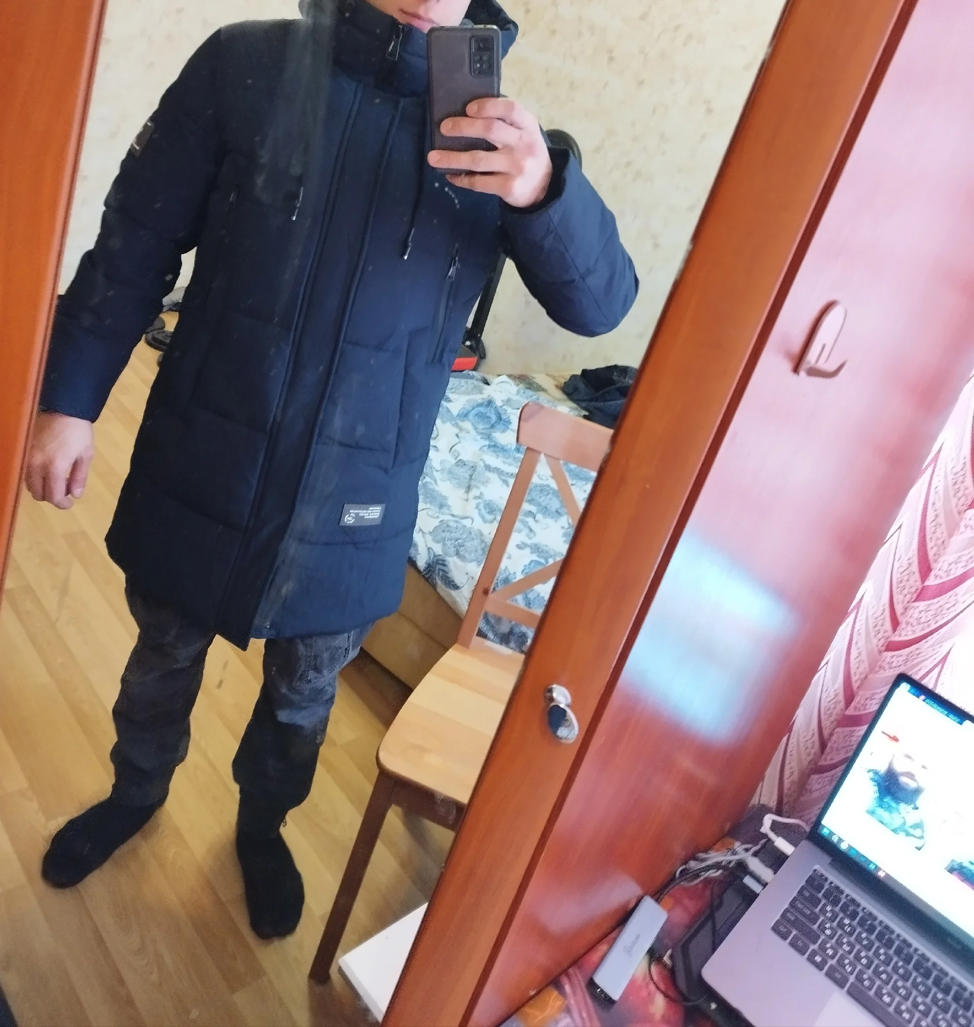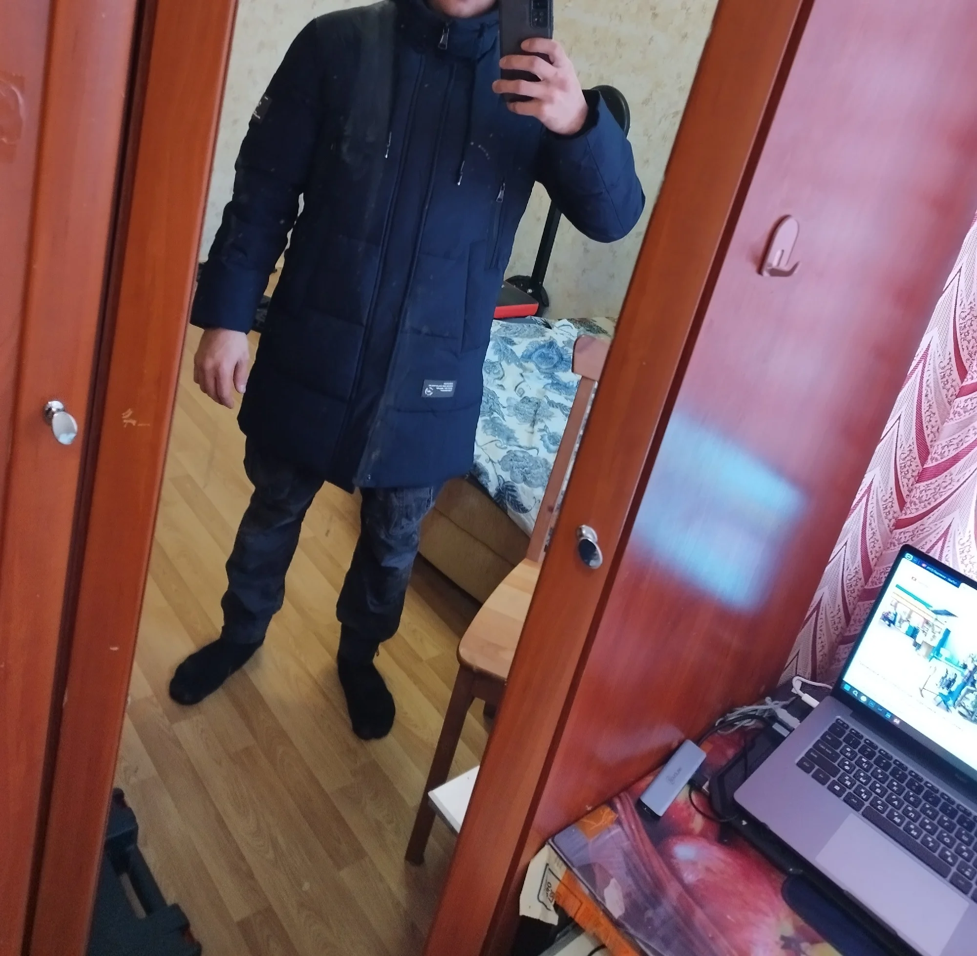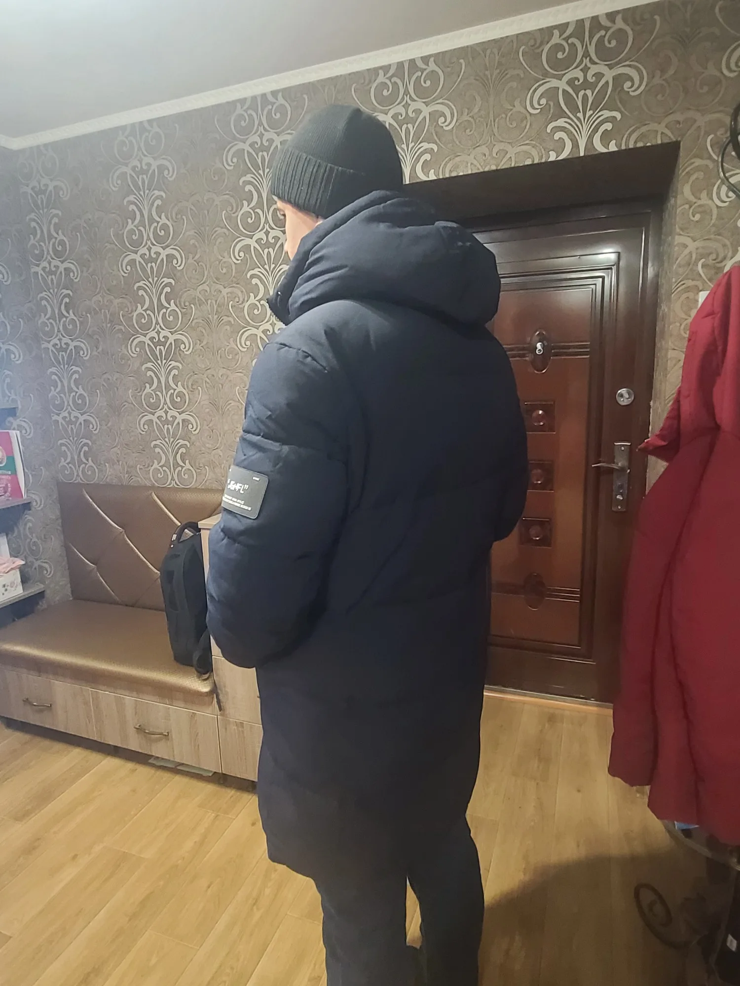 He also liked everything and the color and size-15 can withstand. Indoors in the down jacket is not hot. Pockets, hood-everything is as it should and where it should be. Thank you very much!!! Definitely recommend!!!
