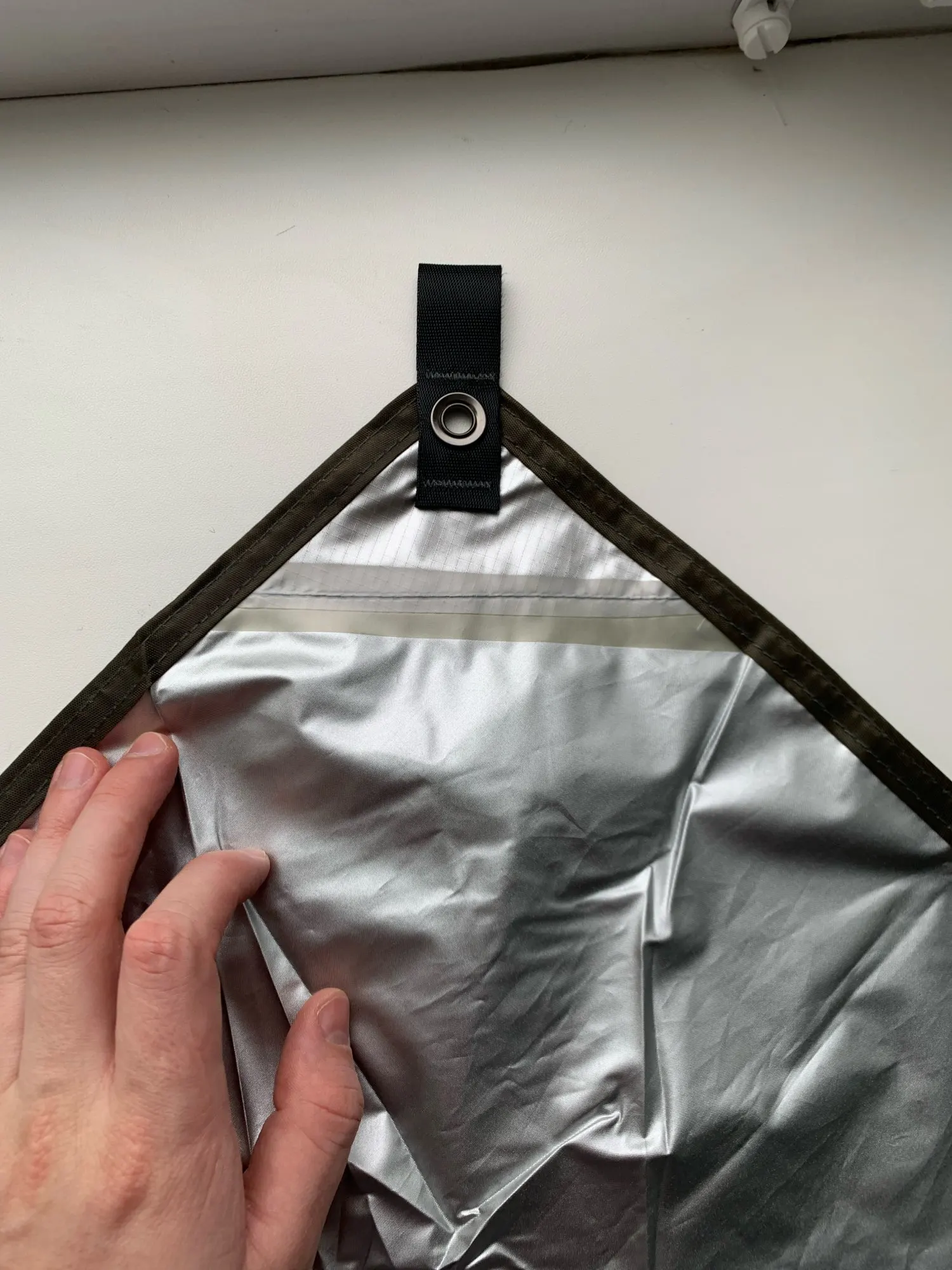 Fabric with silver coating, blocking more than 95% of the ultraviolet rays.